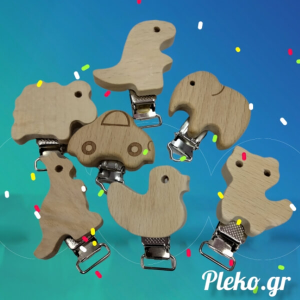 Ξύλινο κλιπ πιπίλας για χειροποίητες αλυσίδες. Φυσικό, ασφαλές και ιδανικό για μοναδικά δώρα μωρού.